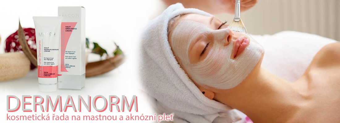 Macon Linie DERMANORM - kosmetická řada na mastnou a aknózní pleť s vitamínem A (redukující sekreci mazových žláz), extraktem hamamelisu a vrby bílé - aktivní regulátor mazu.
